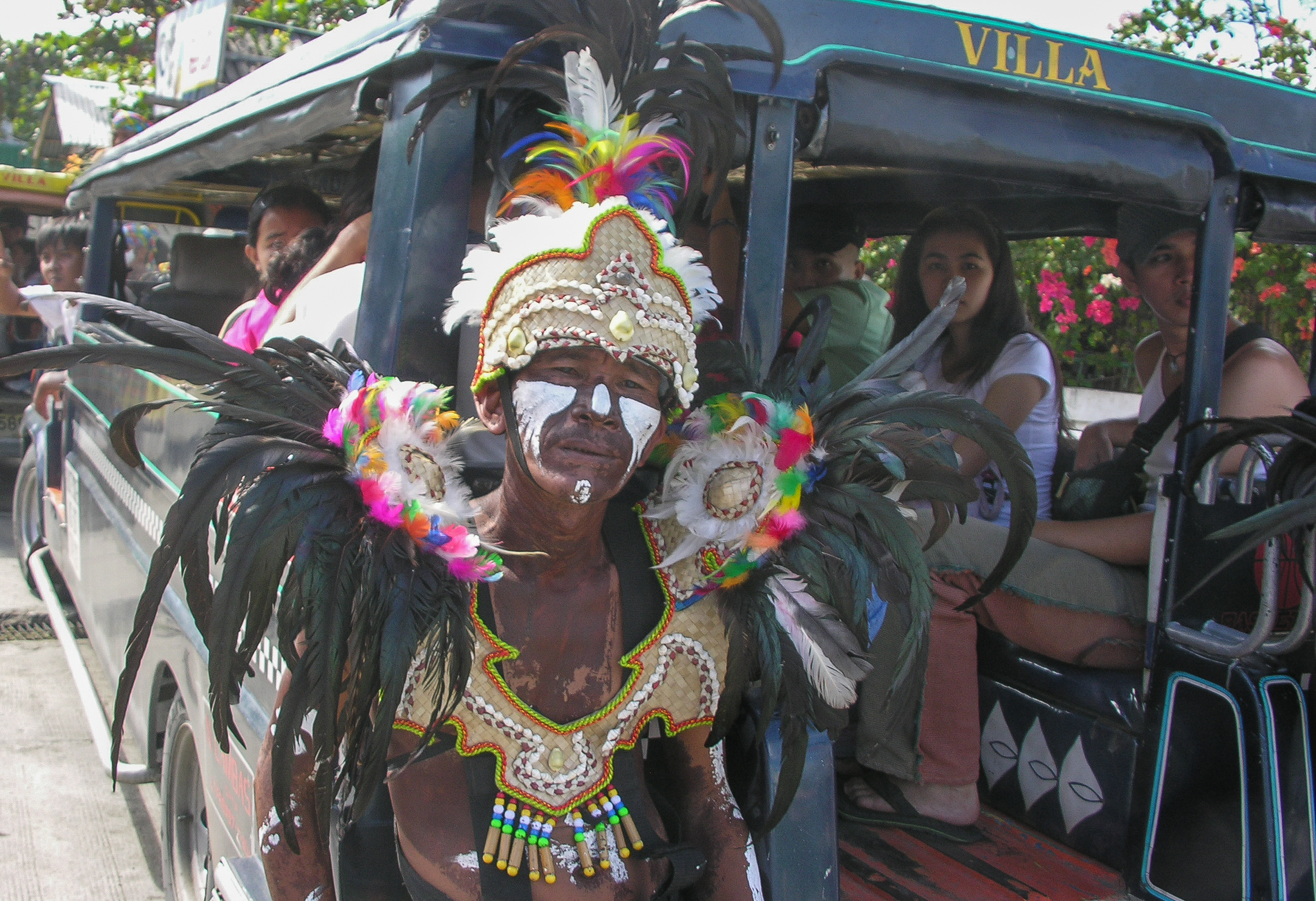 Ati Atihan es un gran carnaval de calle donde grupos disfrazados con los trajes tribales más originales desfilan bailando por las calles día y noche, al son de una potente percusión de tambores.